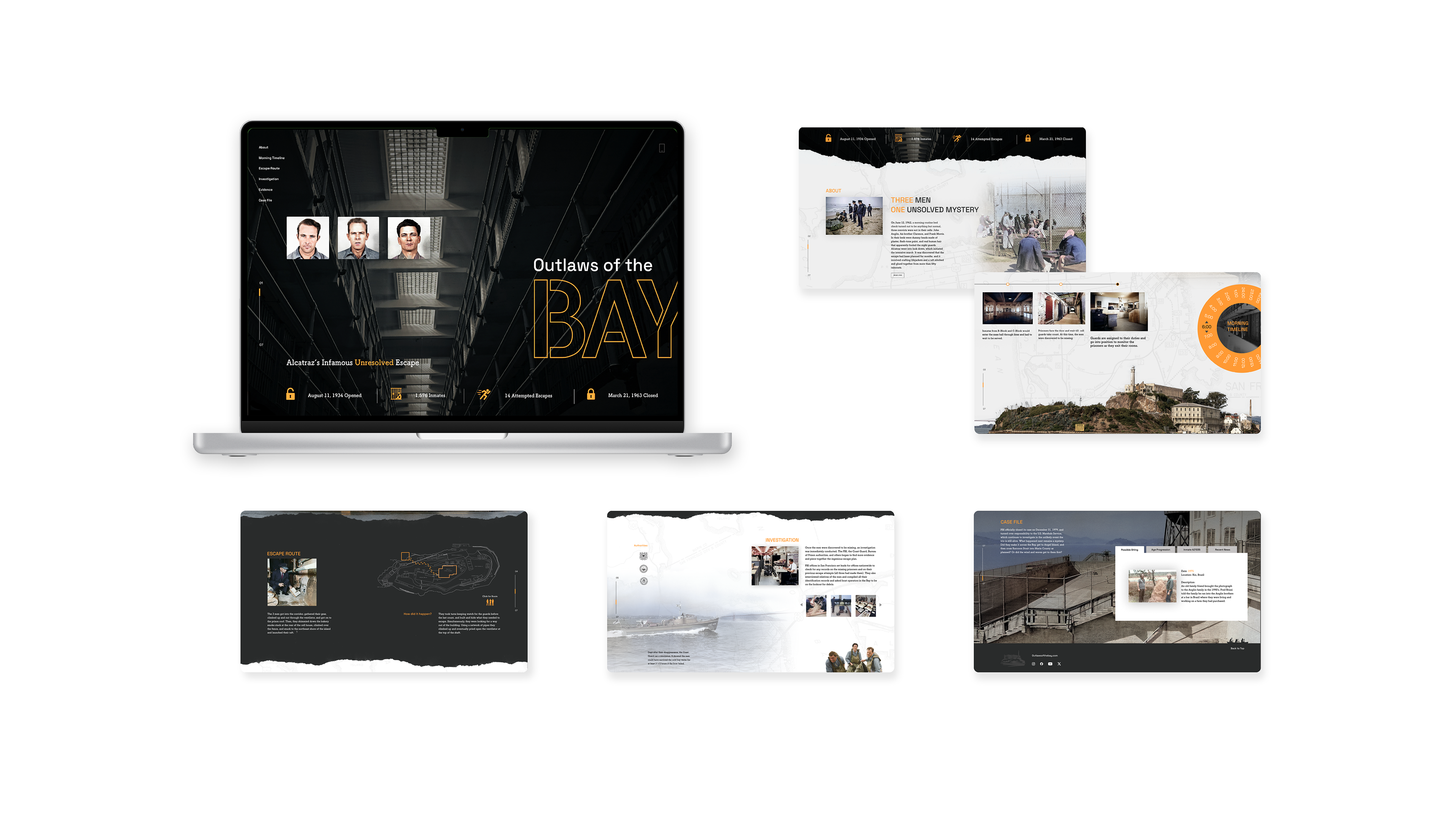 Desktop and mobile website designed for the infamous Alcatraz escape which still remains un solved. A detective-like site, where the user follows a timeline of the escape staged with morning routines, investigation photos, and route the trio took.